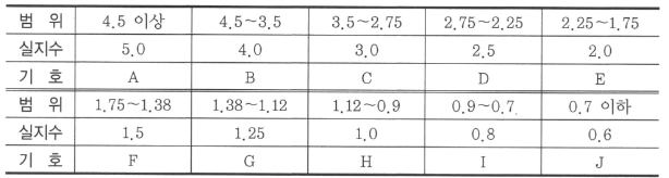 추가적으로, 실지수는 실지수 표에따라 범위를 나눈다.