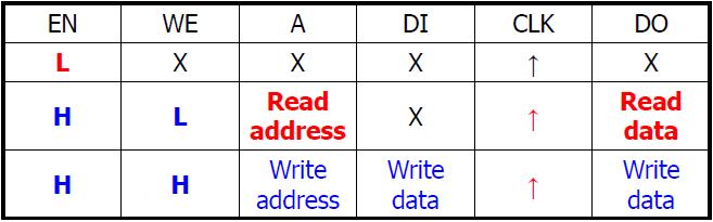 Flipflop을 이용하고, rising edge방식을 채택하며, enable값이 1일 때 동작한다. We값을 통해 ram배열안에서 read/write의 동작 여부를 결정한다. We=0일 때 read가 되어 ram안의 값들을 불러오고, we=1일 때 write가 되어, ram안에 주소 값에 따라 입력 데이터값이 저장된다. Enable이 0일때는 아무 동작도 실행하지 않는다.
