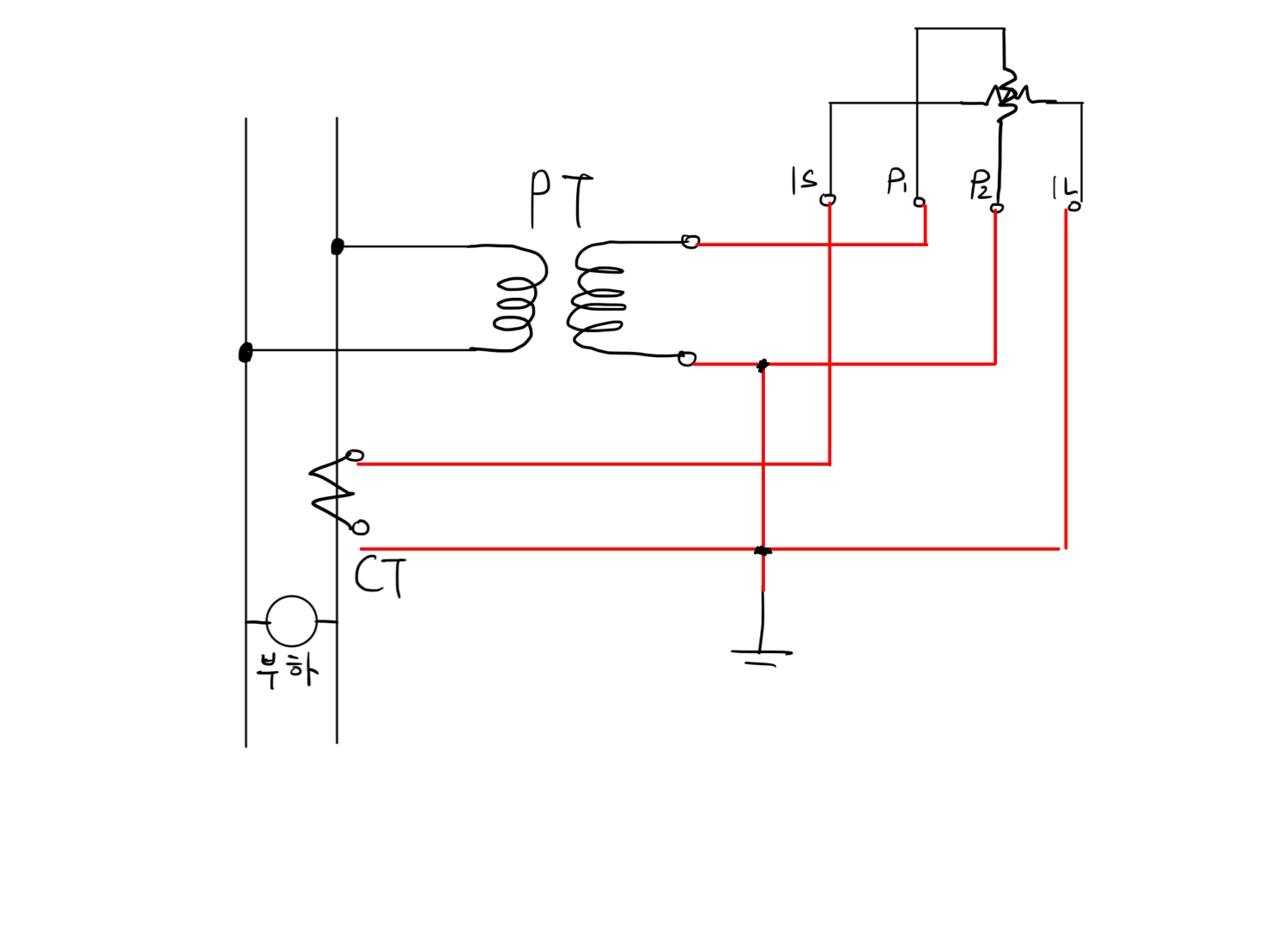 1S, 1L에는 전류 코일이, P1, P2에는 전압코일이 연결되어 있으므로, 1S, 1L은 각각 CT(변류기)에 연결하고, P1, P2는 각각 PT(변압기)에 연결하여 측정한다.