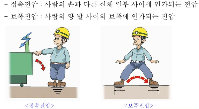 비슷하게 보폭전압도 있는데, 보폭전압은 기기에 손을 대지 않았을 때에도, 땅에 두 발 사이에 걸리는 전압을 의미한다.